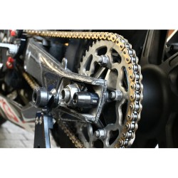 Zintegrowane ślizgacze zapewniają ochronę tylnej osi, mogą również być stosowane jako adaptery do zamocowania rolek wahacza. Są montowane są na takiej samej zasadzie, jak oryginalne, dlatego można je zamocować bez wprowadzania jakichkolwiek modyfikacji w konstrukcji motocykla . Po zamontowaniu ułatwiają szybsze i bardziej dokładne ustawienie koła. Zastosowane materiały (utwardzany stop aluminium), poddane precyzyjnej obróbce w technologii CNC, gwarantują maksymalną wytrzymałość. ślizgacze tylnej osi to nie tylko trwałość, ale także unikalny design.