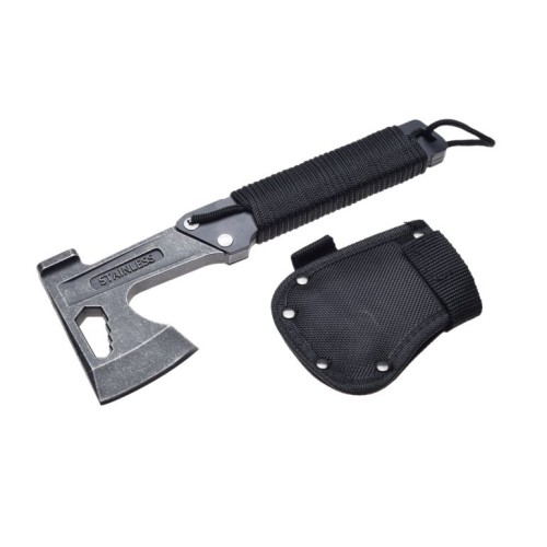 Wielofunkcyjny, kompaktowy toporek turystyczny wykonany ze stali. Posiada pokrowiec na ostrze. Łatwo zmieści się do kufra motocyklowego.