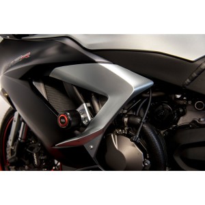 Crash-pady osi chronią elementy przedniego zawieszenia przed uszkodzeniami i skutecznie pochłaniają siłę uderzenia. Kształt tych elementów – opracowany na bazie wielu doświadczeń i testów – zmniejsza ryzyko zahaczenia o przeszkodę podczas ślizgu motocykla. Nowa seria wyposażona została również w element odblaskowy, który zwiększa widoczność pojazdu w trudnych warunkach i podczas jazdy w nocy.